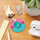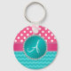 Llavero Polka rosado monograma con chevron turquesa