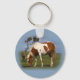 Una cadena de souvenirs / llavero con una hermosa imagen de un poni de piebald pastando tranquilamente al lado de un solitario arbusto en el Parque Nacional de Dartmoor. código de imagen: hrcol67