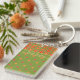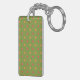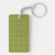 Una moda, oblonga Keychain acrílico para personalizar, con patrones de mezcla de los Cachorros Retro en un fondo verde, en equipo con puntos de Polka. A partir de un collage de papel pintado a mano realizado por Judy Adamson, este colorido diseño forma parte de la colección "Poppy Fields" de Posh & Painterly.