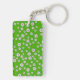 Porte-clés gai et printanier : tapis de fleurs blanches sur un fond vert . Il est coloré et se retrouve facilement au fond d'un sac .