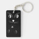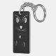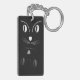 Porte-clés clin d'oeil aux amoureux des chats , illustré d'un tête de chat et de son reflet sur fond noir.