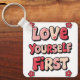 Make self-care your priority with this bold and groovy "Love Yourself First" graphic. Featuring a 70s-inspired bubble font in bright shades of pink and red, this design is a powerful and stylish reminder to always prioritize your own well-being. Surrounded by cute retro flowers, it's the perfect positive statement for anyone on a journey of self-love and empowerment.