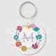 Bright floral wreath surrounds your name on sweet dotty keychain.