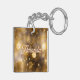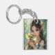 A pretty anime elven fairy holding her cute green and gold baby dragon fairy tale themed personalized key chain.