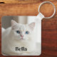 Pretty white cat with blue eyes custom photo keychain. Add your image here. Make your own keychain with your design, company logo or photograph. Upload your picture to this template to see how it looks. Create your own with photography of wedding, family portrait, pet cat or dog etc. Cute DIY gift idea for men women and kids. One sided. Pretty kitten with blue eyes.