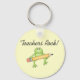 Una rana sonriente verde brillante sostiene un lápiz grande después de escribir "¡Rock de los profesores!" en camisetas de profesores, caramelos, tazas, tarjetas, pegatinas, imanes y mucho más.