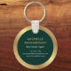 Promueva su negocio con este diseño de cadena de claves personalizado en verde esmeralda y oro. Con espacio para el logo y lema de su empresa en la parte delantera con su nombre, título de trabajo, detalles de contacto y sitio web en la parte posterior. El fondo verde oscuro combinado con los detalles en oro falso hace que un regalo corporativo elegante - perfecto para agentes inmobiliarios e inmobiliarios, propietarios de negocios, abogados y más!