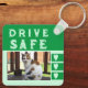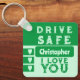 Cadena de teclas de doble lado, idea de regalo de anillo de claves. Añade un nombre al frente y una foto al fondo. Maneja a salvo. Te amo. Oscuro y verde pálido con corazones amorosos.