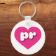 Este llavero cuenta con un vibrante corazón rosado caliente que contiene letras fundas más bajas, redondeadas, blancas y negritas, una versión juguetona de la abreviatura de Puerto Rico, la isla encantada.
