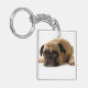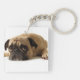Cierre de un Pug con una expresión de culpabilidad en la cara. Aislado sobre un fondo blanco.