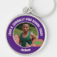 This cool customized high school track team athlete photo gift features white typography of your team on a purple keychain with a running track. Personalize with your student's photograph and class year as a proud runner parent.