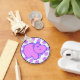 Púrpura Hippo con un contorno azul, y patrón de hipopótamo en el fondo. animal salvaje, boca grande, dientes, lindo.