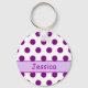 Diseño gráfico de puntos de polka púrpura sobre fondo blanco.