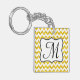 Purpurina amarillo moderno Chevron Zig Zag Stripe Monograma Cadena de clave personalizada inicial