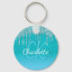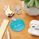 Fondo de degradado verde azulado de color verde azul purpurina. Decorado con goteo purpurina. Personalice y agregue un nombre y letras monográficas. Escritura de estilo moderno con letras a mano, letras blancas y azules