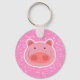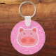 Ilustracion de la cabeza de un lindo cerdo sobre un fondo rosado purpurina