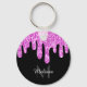 Personalice el accesorio de clave para su hogar o auto con su nombre y nombre inicial. El rosa violáceo claro goteando purpurinas falsos chispas goteando sobre negro. Usamos fotos de chispas. Por favor, tenga en cuenta que no usamos purpurina real!