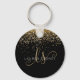 Purpurina Glam Gold Elegant Monogram Keychain, Fácilmente personaliza este diseño de moda de la cadena de moda con un elegante purpurina brillante de oro sobre un fondo negro. El diseño incluye su monograma manuscrito con remolques de bonito y su nombre.