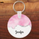 Cadena de teclas con un elegante borde rosa de caramelo de algodón con un borde purpurina plateado (purpurina falso).