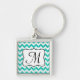 Purpurina Verde azulado moderno Chevron Zig Zag Stripe Monograma Cadena de clave inicial