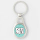 Purpurina Verde azulado moderno Chevron Zig Zag Stripe Monograma Cadena de clave inicial