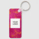 Logotipo comercial de QR Code, cadena de claves profesional y personalizado de doble cara. Diseño rosa, sencillo. Perfecto para su empresa, negocio. Teclas promocionales.