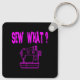 El anillo del portaobjetos de la llave de la cadena de claves impreso con Sew What ? frase de texto creativa marca de interrogación y ilustracion de diseño gráfico de la máquina de coser de la impresión TheFabricSeal en la tienda de la demanda Zazzle.com #ZazzleMade https://www.zazzle.com/store/thefabricseal TheFabricSeal ©️ Original. Este divertido y caprichoso diseño de género neutro es un regalo perfecto para todas las edades y niveles de los entusiastas de la costura y los textiles. Combinando un juego de palabras humorístico y sarcástico, con un dibujo de un estilo moderno de máquina de coser. El esquema de paleta de colores que se muestra en el diseño y los colores de fondo son negro, rosa caliente, fucsia y violeta. Este diseño está en formato PNG y puede tener cualquier elección de color que desee. Los hermosos colores del arcoiris y más allá de la sección de personalización de productos Zazzle que he usado son para mostrar algunos ejemplos de diferentes ideas de variación de colores. ¡Descúbrelos. Gracias. Todos los productos y diseños artísticos de nuestra tienda se pueden personalizar con la redacción de texto que usted elija si necesita y desea continuar con los procesos de personalización. Gracias por elegir, mirar y comprar en TheFabricSeal.