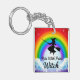 Este caprichoso llavero presenta una vibrante acuarela de una bruja que vuela sobre su escoba con un hermoso arco iris en el fondo con las inspiradas palabras "Paseo con bruja del orgullo". Una gran manera de mostrar apoyo a la comunidad LGBTQ Witches.