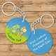 La rana sonriente sobre la hierba roba un cono de helado con la lengua. Texto personalizado en ambos lados.