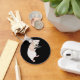 Este moderno y surrealista keychain de botones, zip Pull muestra mi retrato de un camarero de rata que llevaba una bandeja de copas de vino contra un fondo negro. Esta cadena de llaves haría un regalo encantador, y un accesorio inusual. El retrato se basa en una rata de la vida real mascota Reilly.