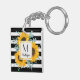 Llavero Rayas blancas negras Girasol de oro personalizado