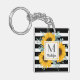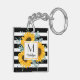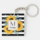 Este keychain personalizado presenta un moderno diseño de girasol acuarela y follaje con franjas falsas de oro y blanco y negro. Personaliza el monograma con tu nombre y inicial.