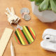 Un diseño vertical irregular a rayas en verde, naranja, amarillo pálido, ocre dorado y pepino crudo, cada uno con un papel sutil como efecto textura.