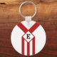 Llavero Rayas rojas y cheurones con monograma sobre blanco