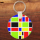 Un colorido diseño abstracto geométrico y de bordes duros, quizás un poco parecido a Mondrian.