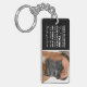 La cadena de claves conmemorativas de los mascotas, con una foto de su amado mascota, y la frase de simpatía que dice "Cuando mañana empiece sin mí, no crean que estamos muy separados. Por cada vez que piensas en mí, estoy aquí dentro de tu corazón". Al revés hay una huella dactilar con el corazón dentro, su nombre y fechas.