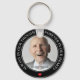 Un llavero de tributo para que amigos y familia tengan como recuerdo una fotografía de su ser querido y las palabras "SIEMPRE EN NUESTROS PENSAMIENTOS Y PARA SIEMPRE EN NUESTROS CORAZONES" enmarcando la imagen, un lindo corazón rojo, su nombre y fechas.