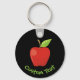 Red apple with leaf icon. Custom background color. Custom text on both sides.