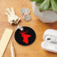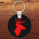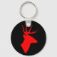 Cadena de llaves negra con silueta roja de cabeza de ciervo.