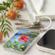 Inhibisco rojo sobre el fondo azul del cielo y las palmeras, efecto de pintura