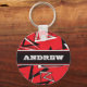Esta divertida cadena de teclas roja, negra y blanca tiene un moderno patrón de zig-zag tipo graffiti para el patinador urbano y se personaliza con un nombre u otro texto. Puede cambiar el tamaño del área de texto y/o el tipo de letra haciendo clic en el botón "Editar este diseño" para llevarlo a la pantalla de diseño donde puede seleccionar cada capa para editarla como desee.