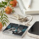Almohada de regalo de boda con una pareja de papel puesta sobre un fondo de un diseño de árbol de la vida de color azul