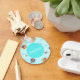 Cuidada temática de color azul hielo de un fiesta de piscina con un diseño de ilustracion divertido de juguetes de piscina y gente divertida en una gran piscina de agua aguamarina. Perfecto para unas vacaciones de verano. Con un nombre personalizado para un regalo para un nadador.