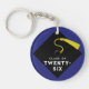 Llaverito de recuerdo de graduación creativo con gorra de graduación negra y borla dorada sobre fondo azul. Para personalizar, edite el texto para cambiar el año de la clase de graduados.