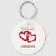 Personalice esta llavero con su nuevo apellido pronto. Corazones hechos con rosas rojas es el diseño en este llavero de regalo de compromiso. Un gran regalo para la futura Sra.