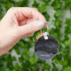 Cadena de teclas personalizada con una hermosa imagen de una oscura y abstracta piedra de ágate. Los colores giran en olas. Los colores principales son el negro, el azul y el gris, con una cinta de imitación de oro que atraviesa el diseño. Moderno y de moda.