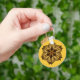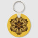 Cadena de teclas de flores amarillas con una obra de arte abstracta creada a partir de un elemento pétalo dibujado con tinta. Esta decoración bonito con motivos florales tiene colores cálidos amarillo y marrón oscuro.