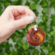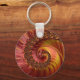 Esta hermosa cadena redonda de teclas presenta un fractal de espiral fiero abstracto en tonos rojos y amarillos.
