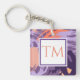 Llavero Resumen monograma púrpura y coral