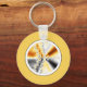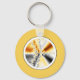 Esta linda cadena de teclas redondeada presenta naranja dorado y arte fractal gris en un marco redondo.